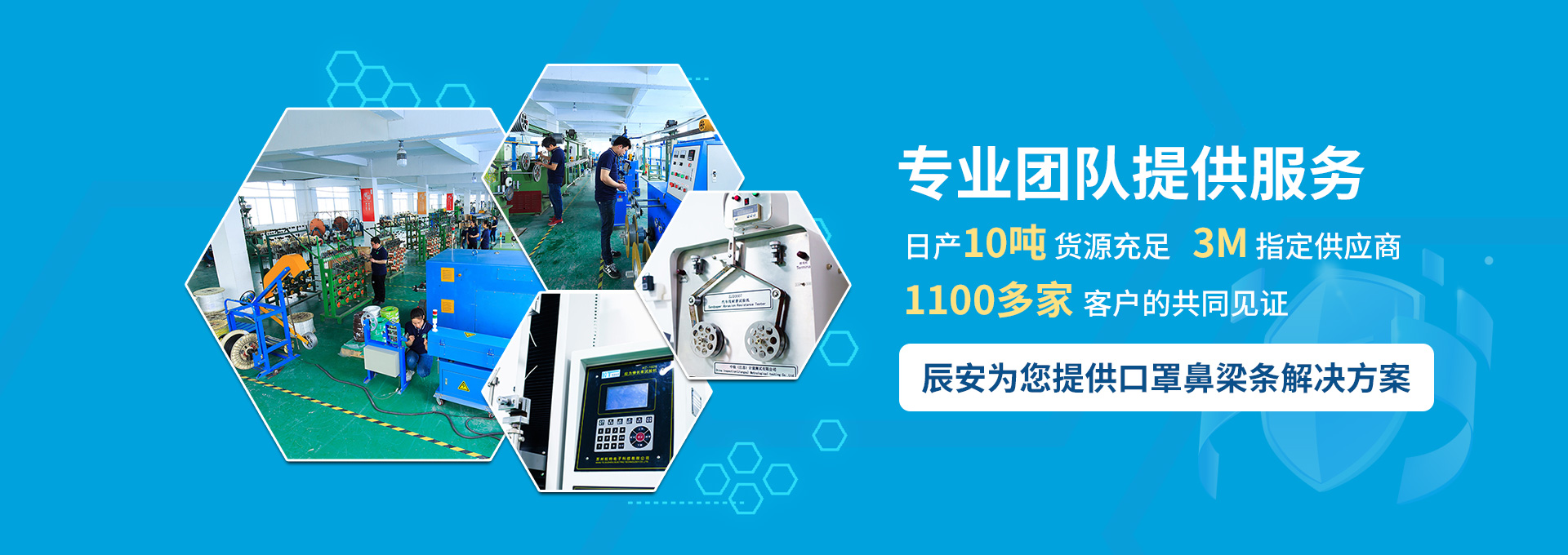 無(wú)錫辰安新材料是一家集研發(fā)、生產(chǎn)和銷(xiāo)售—體的現(xiàn)代化口罩物料鼻梁條、耳帶的企業(yè);公司地址位于全國(guó)創(chuàng)新型城市——江蘇省無(wú)錫市。產(chǎn)品多樣:有單芯鼻梁條、雙芯鼻梁條、全塑鼻梁條、鋁條鼻梁條、KN95、KN94口罩用鼻梁條可定制;口罩耳繩材質(zhì):氨綸、···